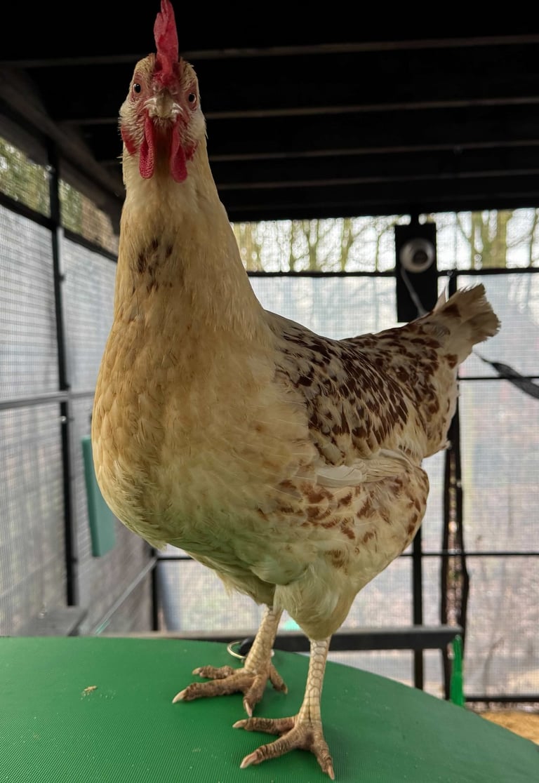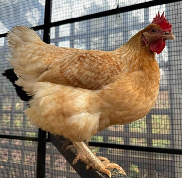 Amber: The Sweetheart. Though she’s at the bottom of the pecking order, Amber is the friendliest of the bunch. She’s a gentle soul who’s currently training to be the first hen to jump into my hand!